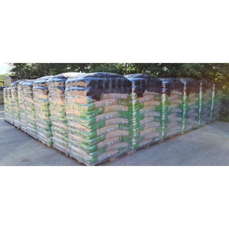 Vitalstreu ist eine Einstreu für Pferde, welches aus Miscanthus besteht. Es wird mit Druck und Wärme behandelt, dadurch wird es großteils thermisch entkeimt und die Dichte auf 400kg/m³ erhöht! Dies spart Kosten bei Transport und Lagerung. Durch die Druckbehandlung werden die Zellen aufgebrochen und die Saugfähigkeit um 50% erhöht. Der aus VITALSTREU entstanden Pferdemist wird zu einem hervorragenden Dünger. Pferdemist aus Sägespänen und Sägemehl versauert den Boden!!